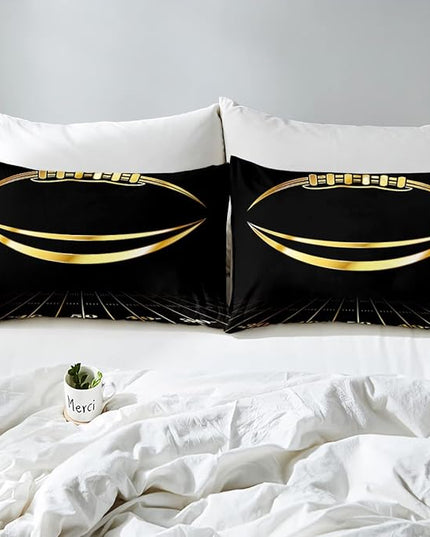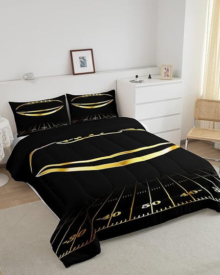 Feelyou Football Bedding Set Queen Kids Rugby Sports Comforter Set American Football Comforter Set for Boys Golden Black Room Decor Lightweight Quilt Set with 2 Pillow Case