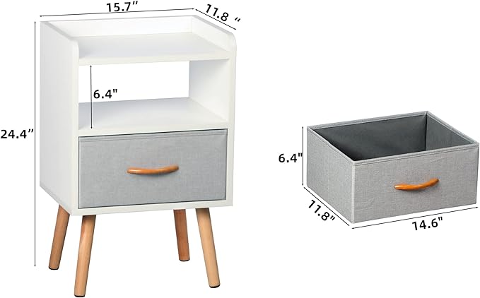 About This 【Sturdy Nightstand】Crafted from high-quality MDF boards with scratch-proof surfaces, four legs made from solid beech wood are stably...