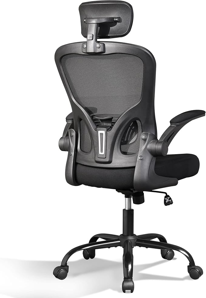 DEVAISE Mesh Computer Office Chair, High Back Ergonomic Desk Chair with Flip-up Armrests and Adjustable Headrest, Backrest and Lumbar Support, Black