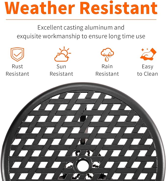 Bistro Set 3 Piece Outdoor,Cast Aluminum Outdoor Bistro Set,All Weather Bistro Table and Chairs Set of 2 with 1.97" Umbrella Hole,Patio Bistro Sets for Garden(Woven Black)