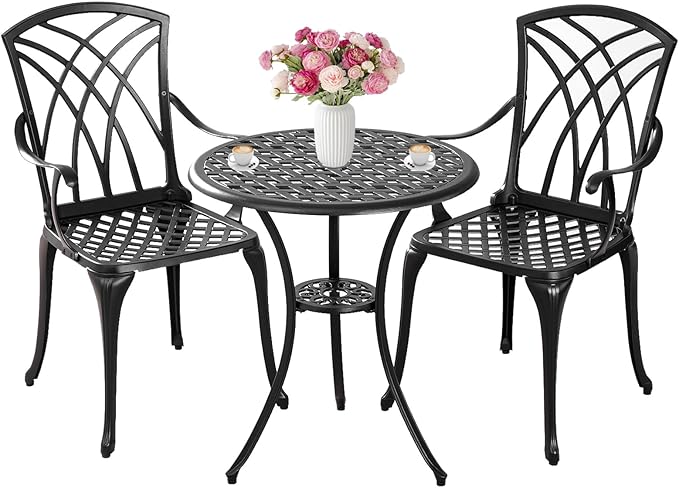 About This 【Rust prevention and weather resistance】: The 3 piece patio bistro sets are made of solid cast aluminum, with...