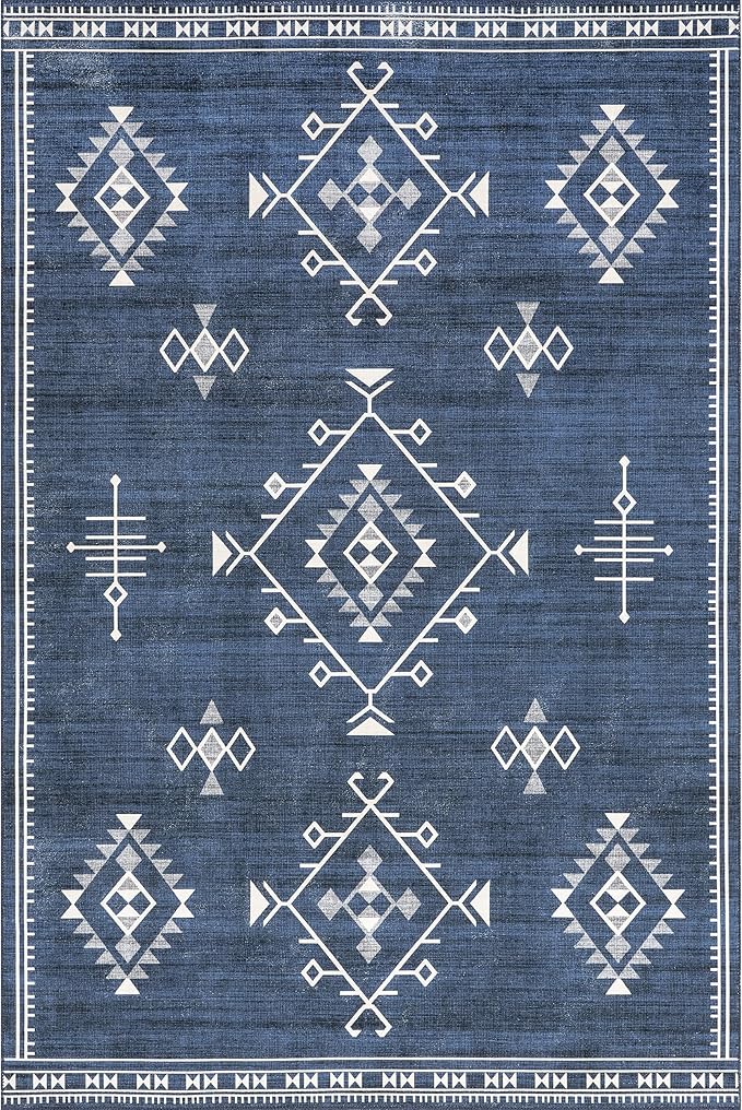 nuLOOM Evalyn Southwestern Machine Washable Ultra Thin Area Rug, 8x10, Navy