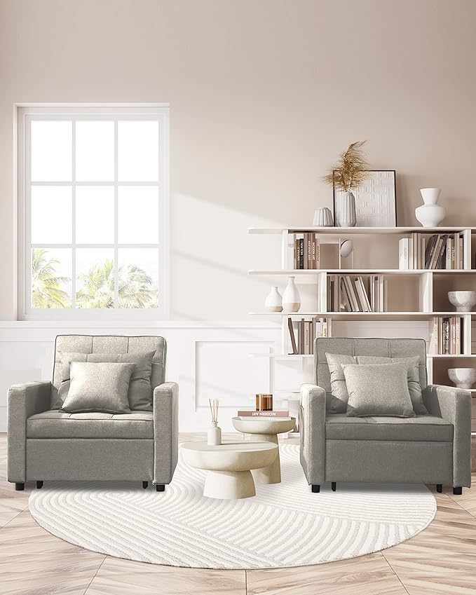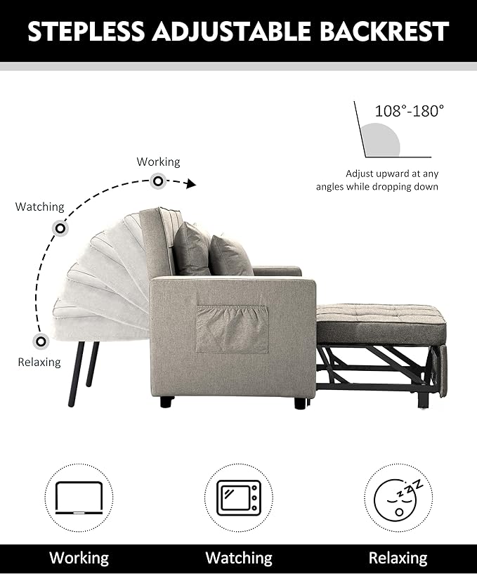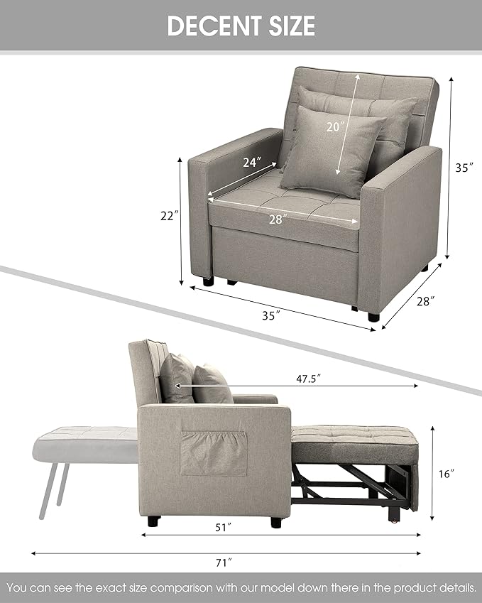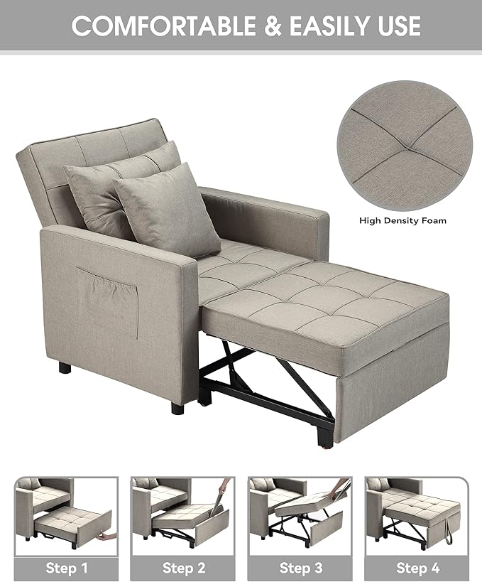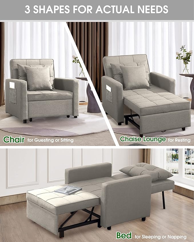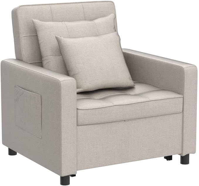 XSPRACER [UPDATED] Convertible Chair Bed, Sleeper Chair Bed 3 in 1, Stepless Adjustable Backrest,Armchair, Sofa, Bed, Linen, Khaki, Single One