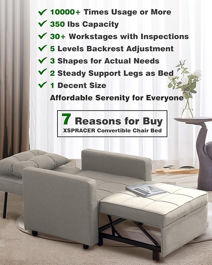 About This Incredible Durability - XSPRACER convertible chair bed has been tested before leaving the factory. Its key components can...
