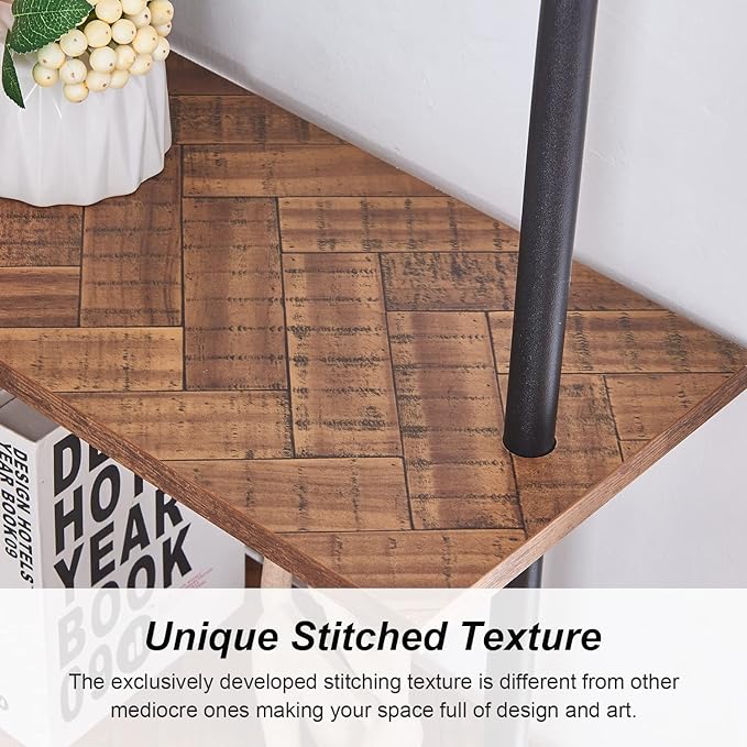 HOMBAZAAR Bookshelf,10-Tier L Shaped, Industrial Double Wide Wall Mount, Modern Bookcase with Metal Frame and Wood, Industrial Corner Pipe Shelf for Living Room and Office, Brown