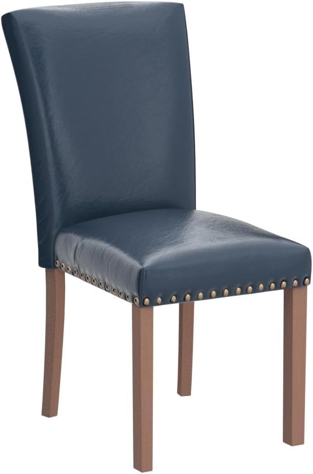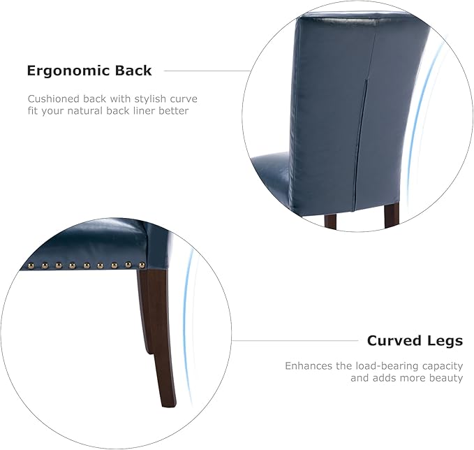 COLAMY Upholstered Parsons Dining Chairs Set of 2, PU Leather Dining Room Kitchen Side Chair with Nailhead Trim and Wood Legs - Blue