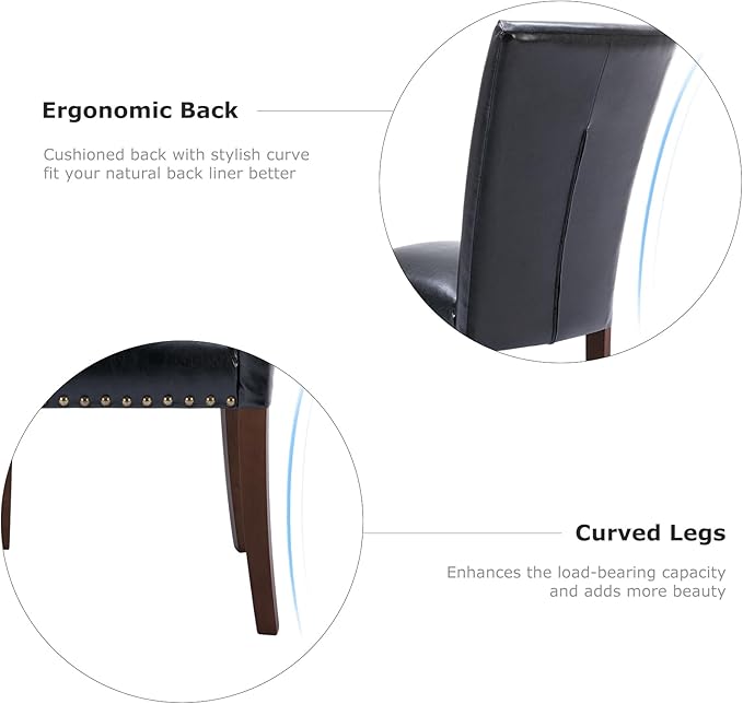 COLAMY Upholstered Parsons Dining Chairs Set of 2, PU Leather Dining Room Kitchen Side Chair with Nailhead Trim and Wood Legs - Black