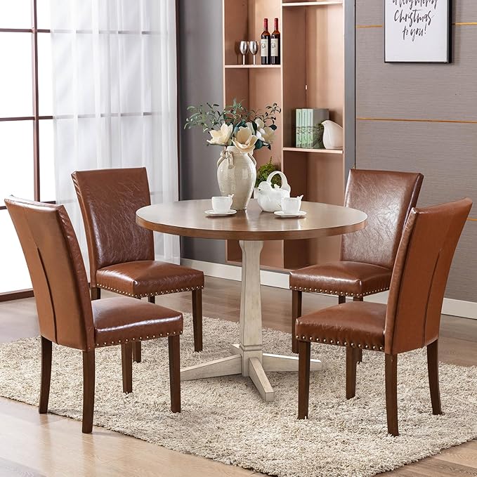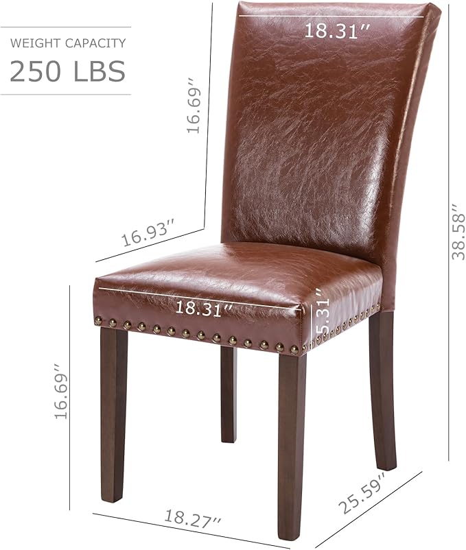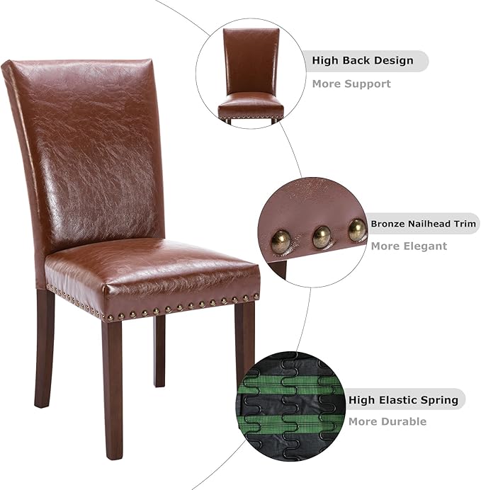 COLAMY Upholstered Parsons Dining Chairs Set of 2, PU Leather Dining Room Kitchen Side Chair with Nailhead Trim and Wood Legs - Light Brown