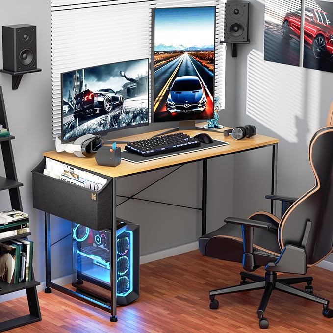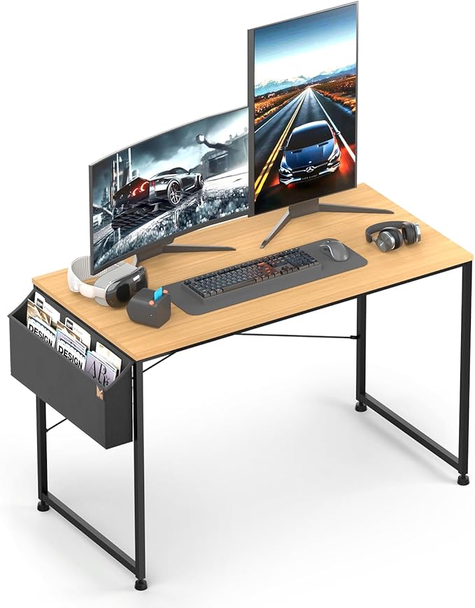 MoNiBloom Computer Desk, Modern Simple Style Laptop Table with Storage Bag for Reading Writing Livingroom Bedroom - Light Walnut