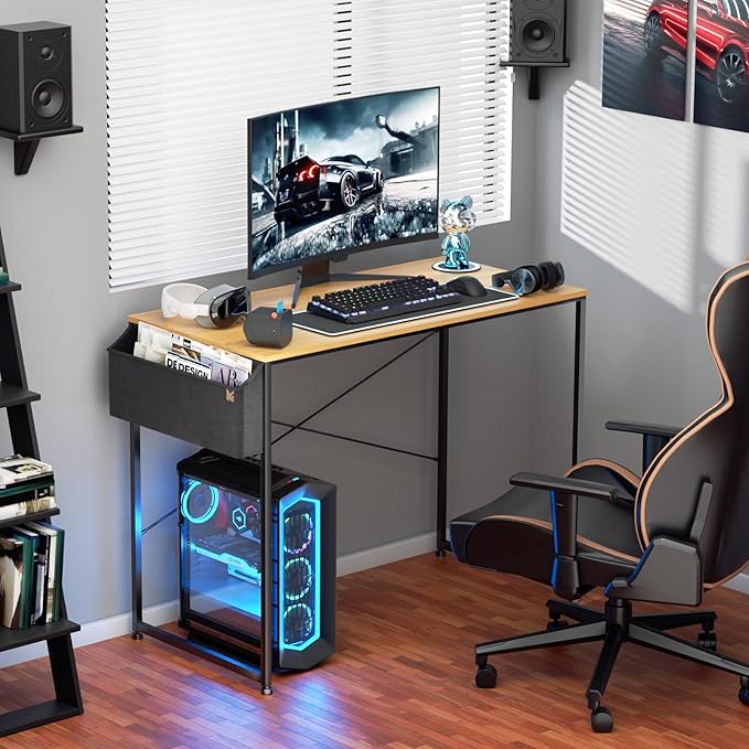 MoNiBloom Computer Desk, Modern Simple Style Laptop Table with Bag for Reading Writing Livingroom Bedroom - Light Walnut