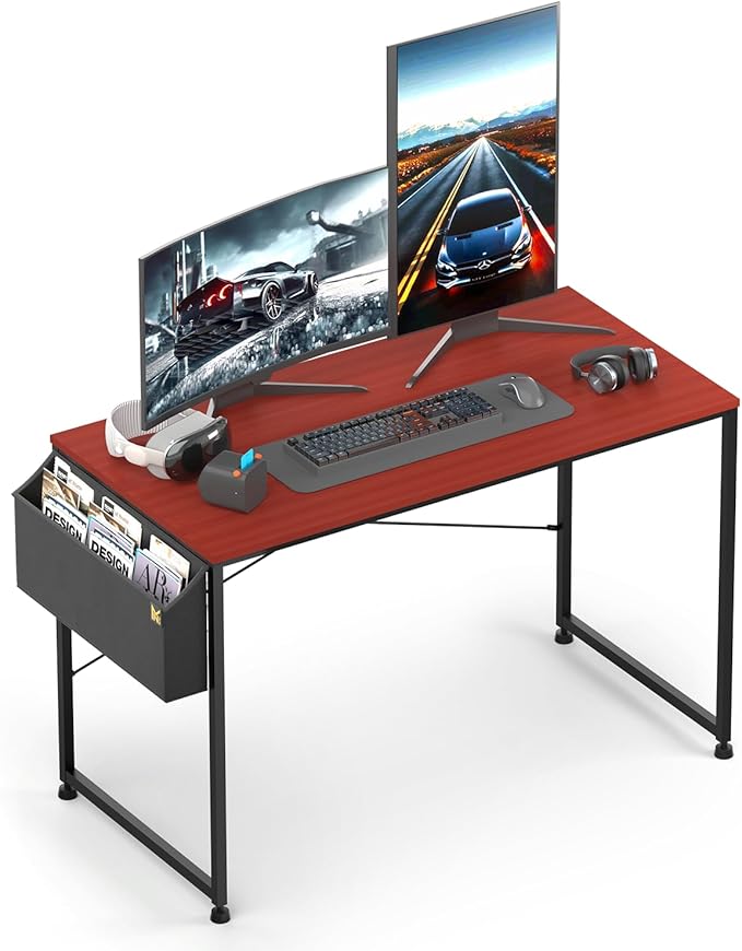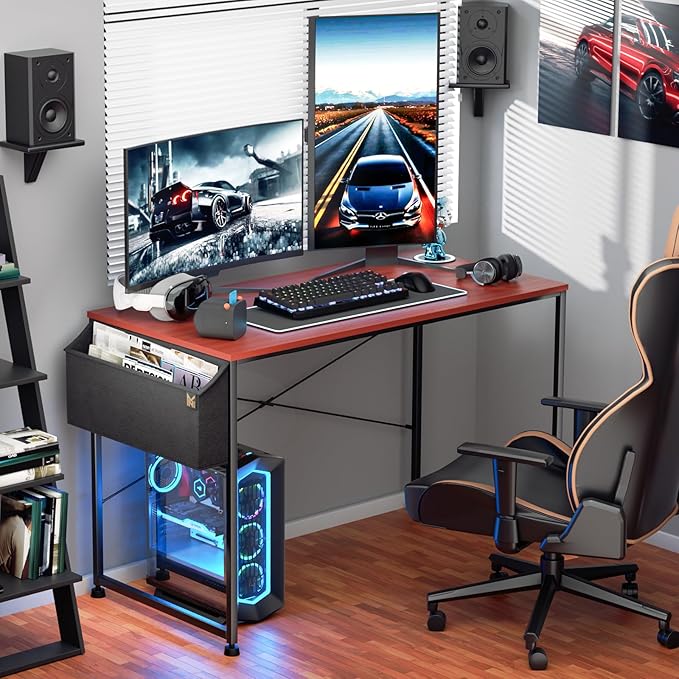 MoNiBloom Home Office Computer Desk with Storage Bag, 47" Writing Study Modern Simple Style Laptop Table, Teak Color