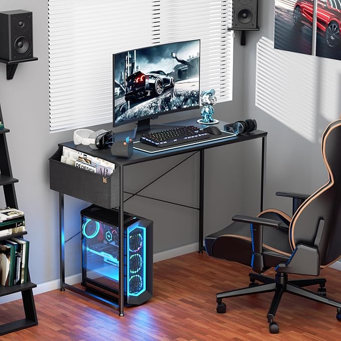 MoNiBloom Writing Computer Desk 40", Simple Home Office Gaming Desk with Storage Bag, Space Saving Table - Black
