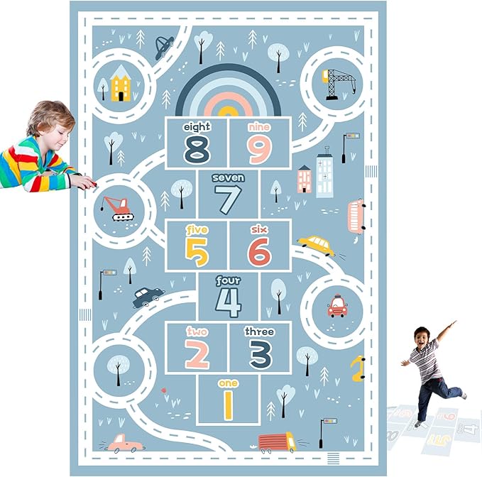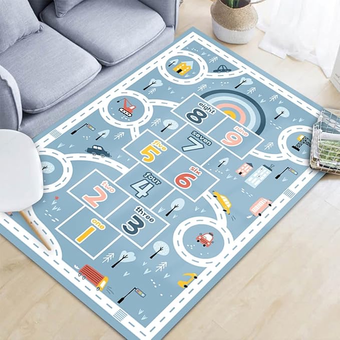 Kids Rug Play Mat, Car Rug, Hopscotch Rug, Hopscotch Mat for Kids, Can Be Used to Play with Cars Kids Carpet Play Mat,(Blue,80×160cm/32×63IN)