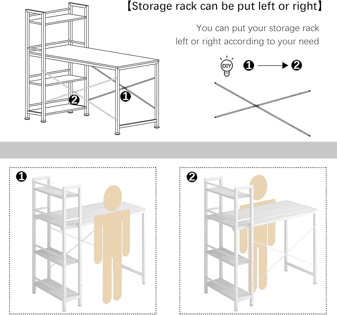 4NM 35" Small Computer Desk with 4-Tier Bookshelf, Home Office Desk Writing Workstation Study Table Multipurpose for Small Space Work - All White