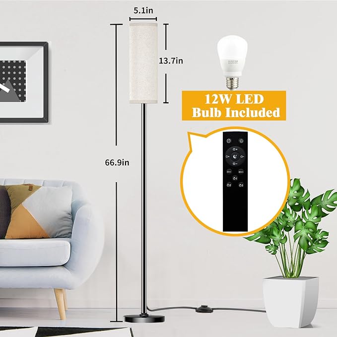Floor Lamp for Living Room Bedroom, Modern Floor Lamp with Remote,Stepless Dimmable 12W Bulb Included,Standing Lamps LED Tall Lamp for Bedroom Office(Beige)