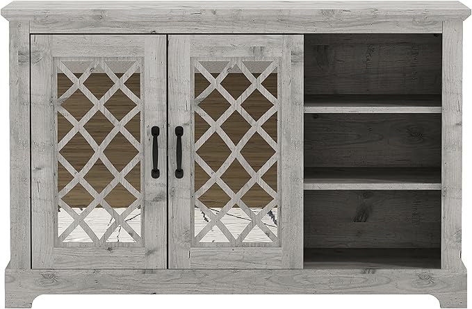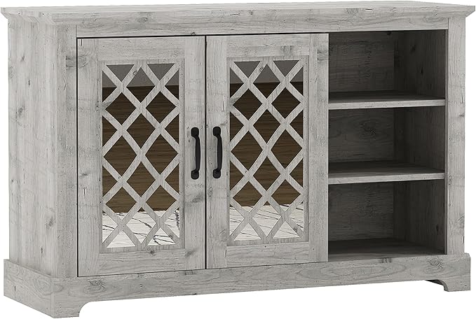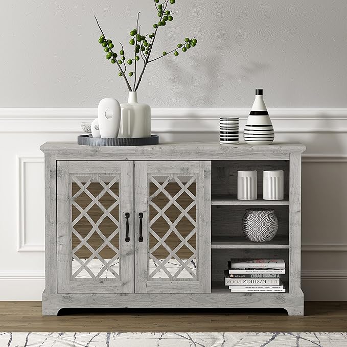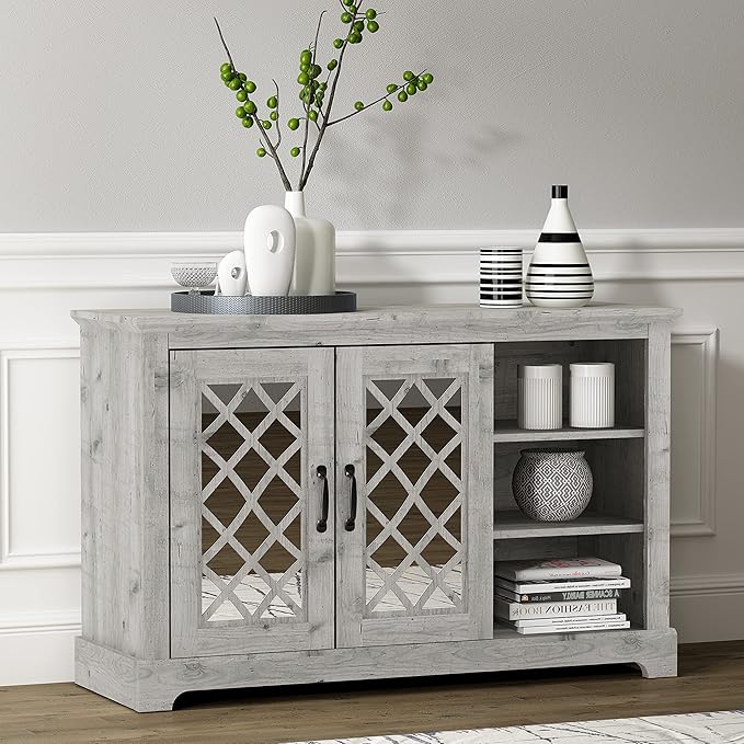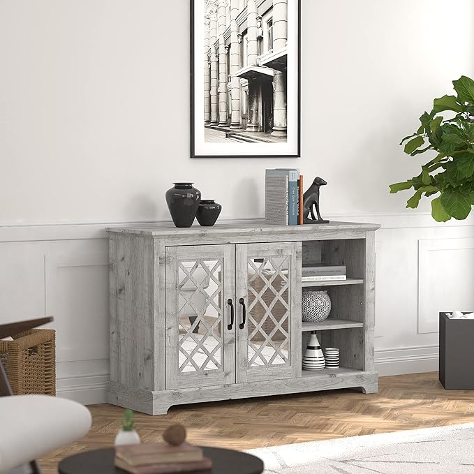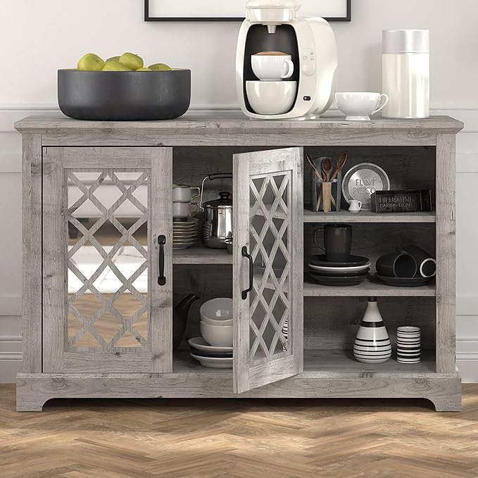 Galano Millicent 2 Door Sideboard with Shelves, Farmhouse Buffet Cabinet, Rustic Storage Cabinet, Coffee Bar for Dining Room, Kitchen, Hallway and Living Room, Mexican Grey