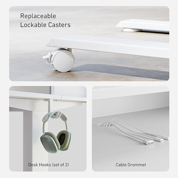 FEZIBO Sturdy Height Adjustable Electric Standing Desk with Drawers, 55 x 24 Inch Stand Up Table with Large Storage Shelf, Sit Stand Desk, White Top