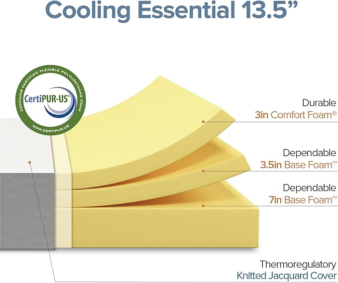 About This CLASSIC COMFORT, MAXIMUM AFFORDABILITY – With its special cooling cover, supportive foams, and dependable construction, the Cooling Essential...
