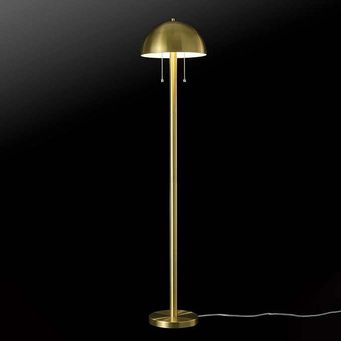 Globe Electric 65786 Haydel 60" 2-Light Floor Lamp, Matte Brass, Double On/Off Pull Chain, Bulb Not Included