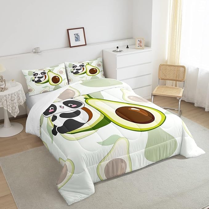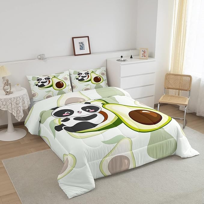 Erosebridal Panda Comforter Set King,Avocado Bedding Set Cute Black White Panda Bedding Bear Cat Bedding Comforter for Kids Boys Girls Green Tropical Fruit Quilt Duvet Set Room Decor 2 Pillow Cases