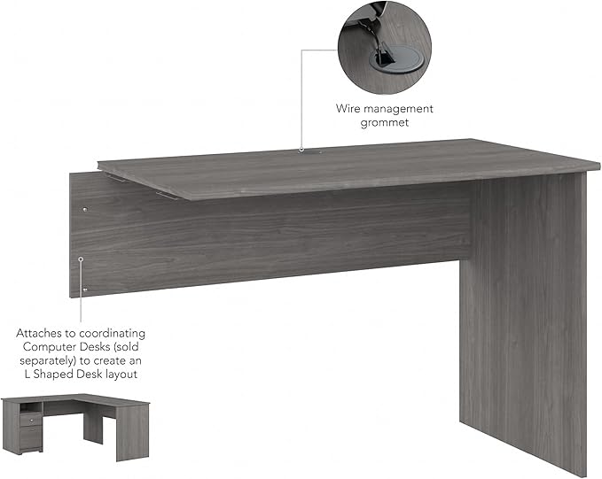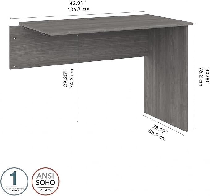Bush Furniture Cabot 42W Shell Desk Return, 48W x 24D, Modern Gray