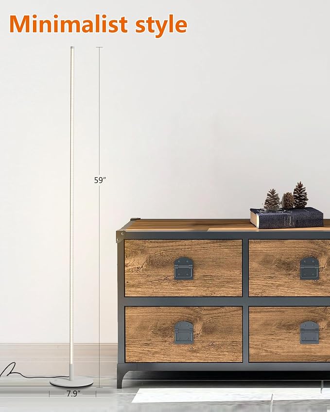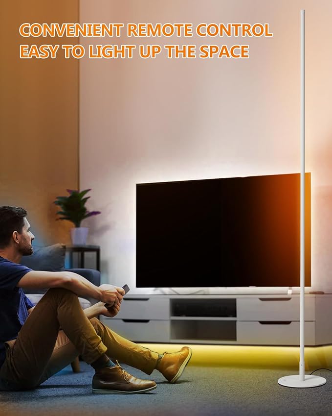 Modern Floor Lamp Led Standing Corner Lamp White Decor Contemporary Metal Floor Lamp for Living Room Bedrooms with Remote & Touch Control