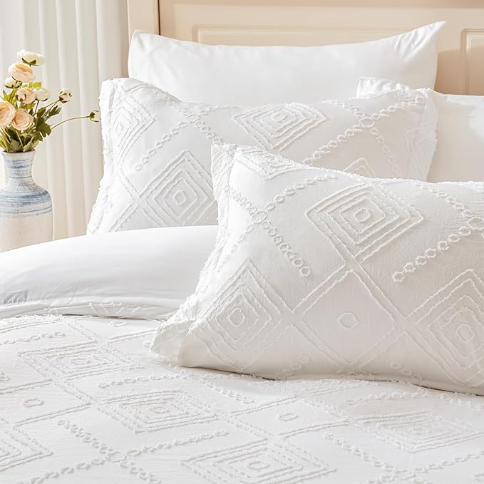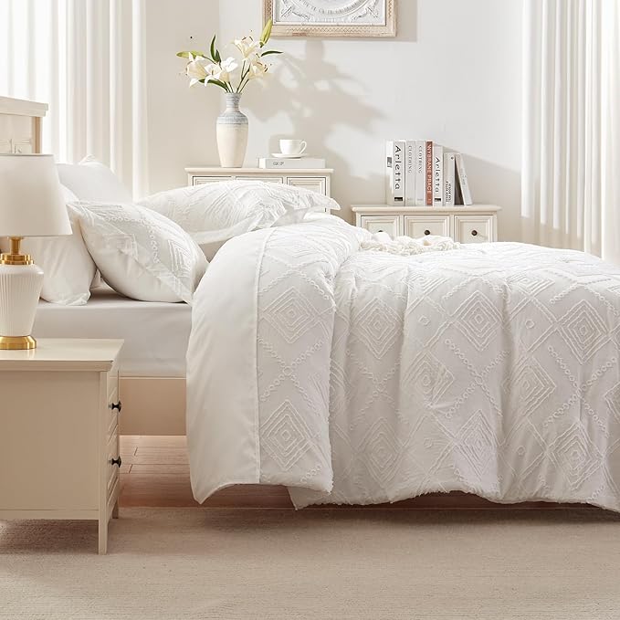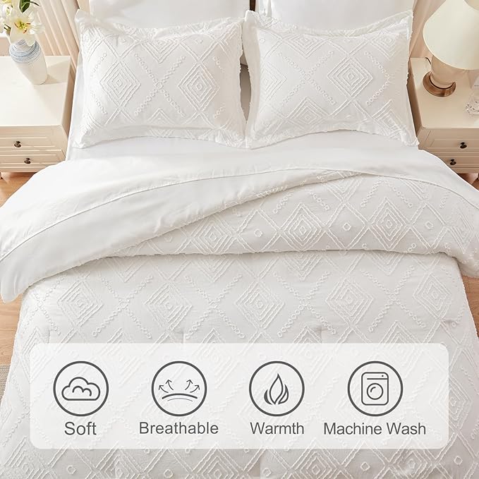 About This Boho Tufted Style: with embroidery shabby chic design, this white comforter set fits various types of decoration, bring...