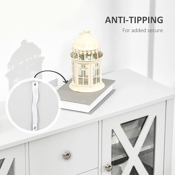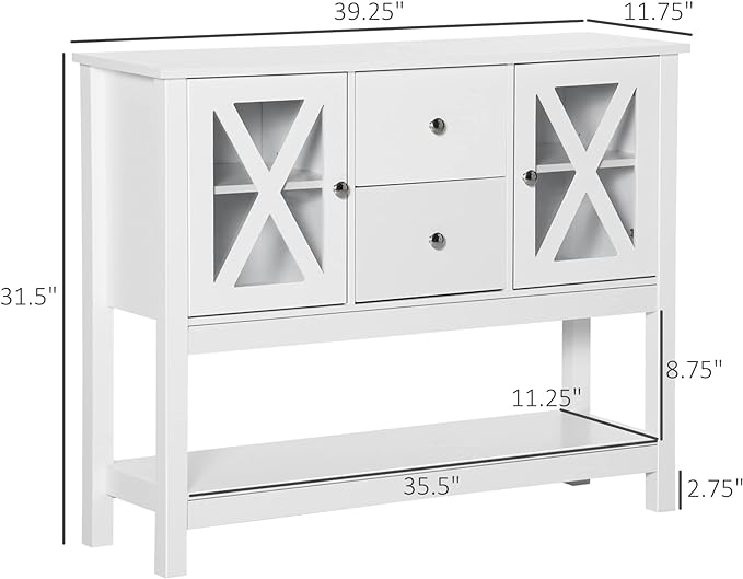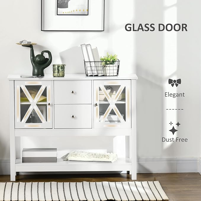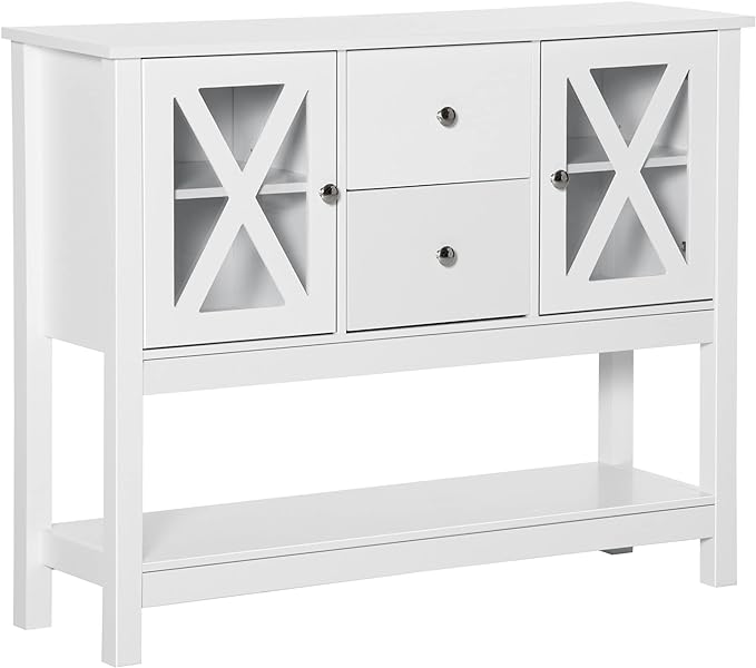 HOMCOM Coffee Bar Cabinet, Sideboard Buffet Cabinet, Kitchen Cabinet with Storage Drawers and Glass Door for Living Room, Entryway, White