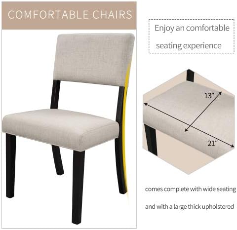 5 Piece, Indoor Modern Wood Set with Round Table, 4 Upholstered Chairs for Kitchen Dining Room, Espresso & Beige