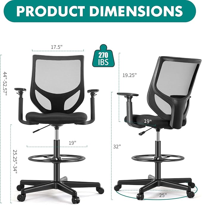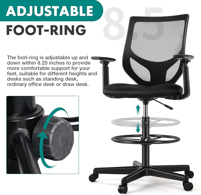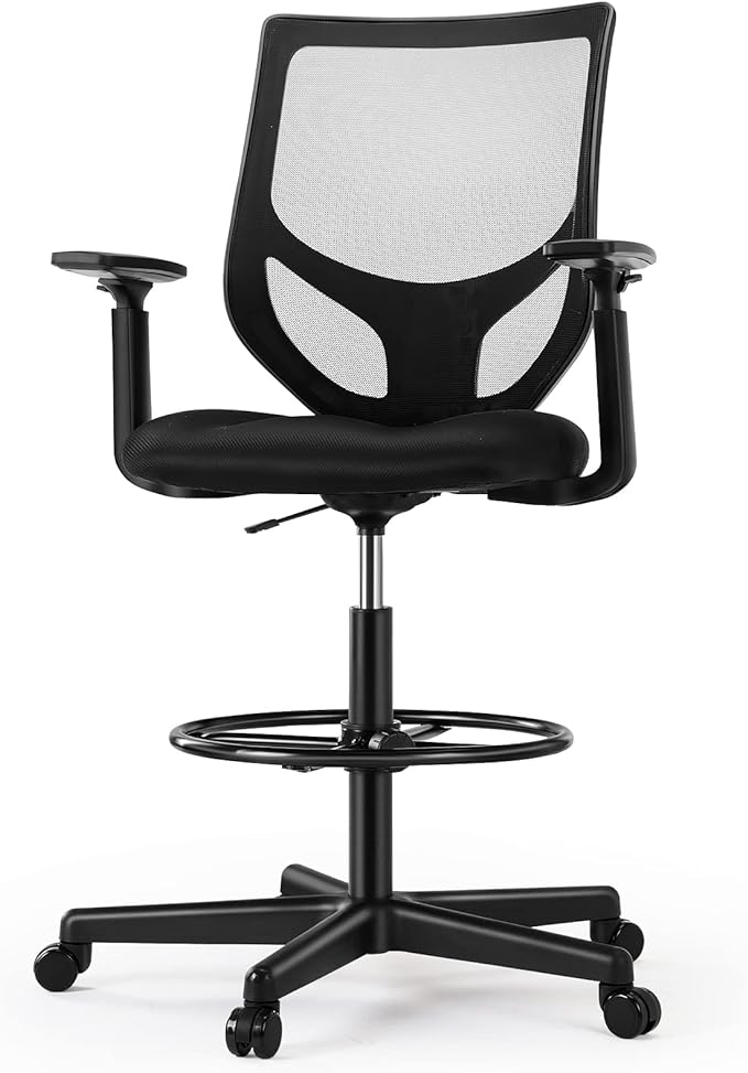 B0B744NKYL– Tall Drafting Chair - Tall Standing Office Desk Chair with Adjustable Foot Ring, Chair with Ergonomic Lumbar Support, Adjustable Height, Breathable Mesh color: DarkBlack