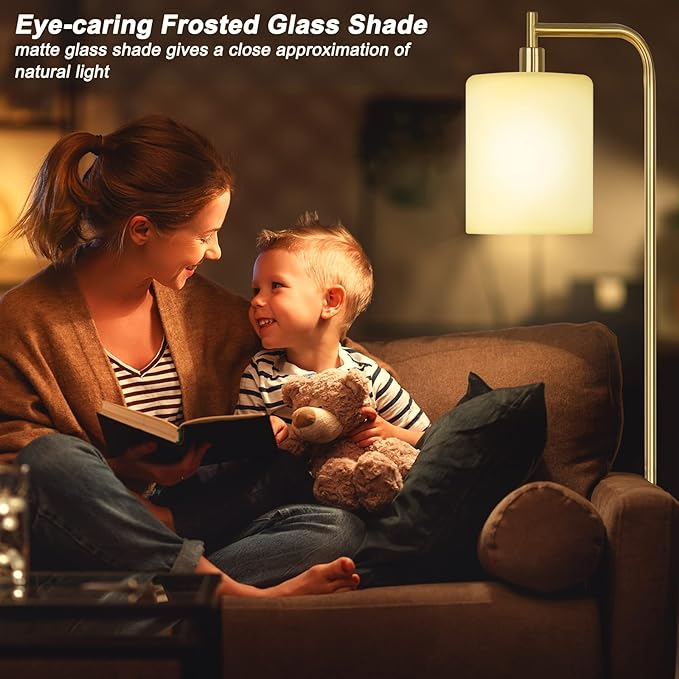 About This Eye-caring Frosted Glass Shade: Cast a warm glow into space by combining this standing floor lamp with a...