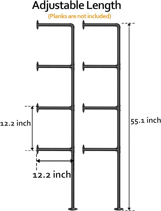 About This SIZE: Industrial iron pipe shelving is freely connected, Total Tall is 55.1 inches, 12 inches in between each...