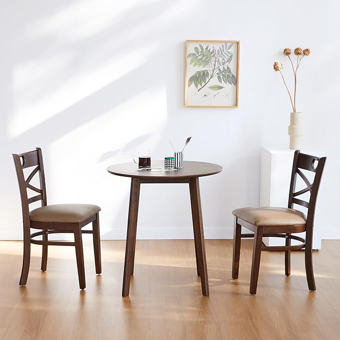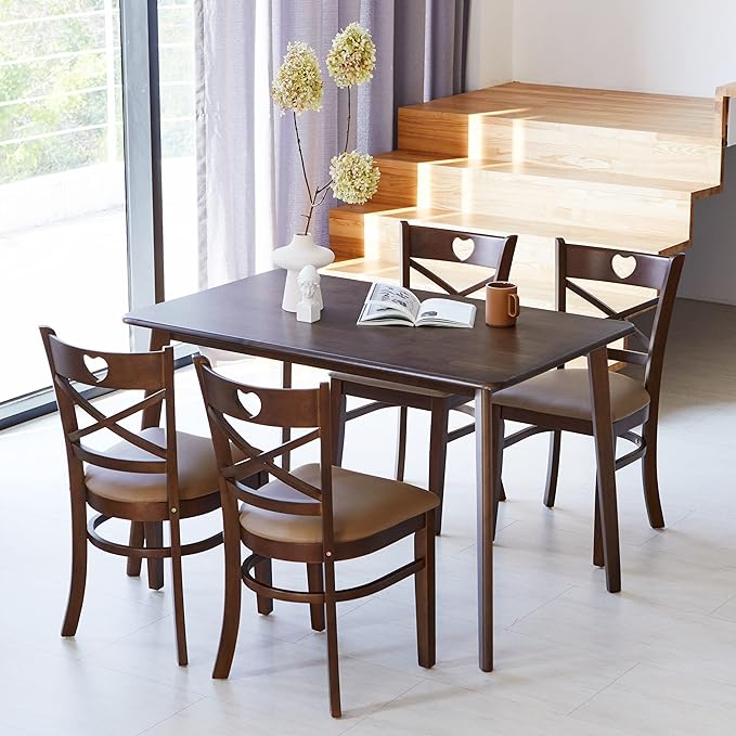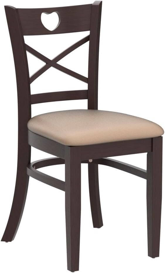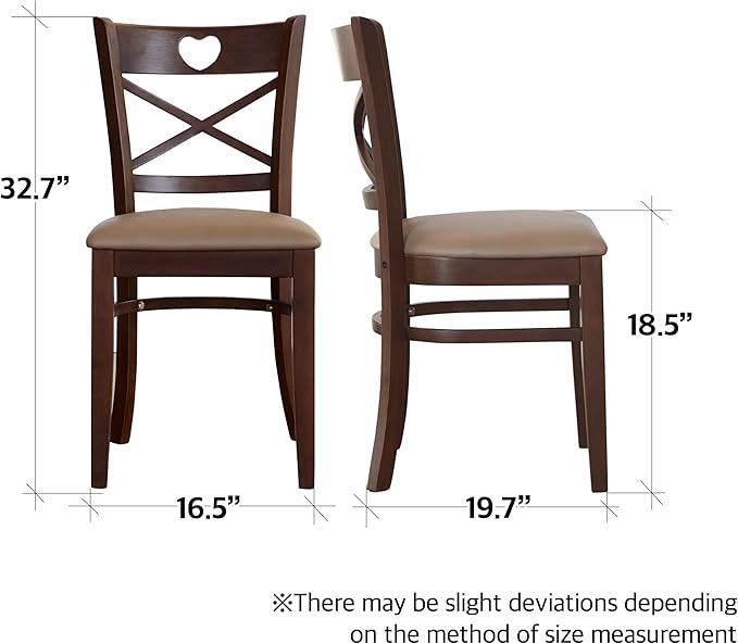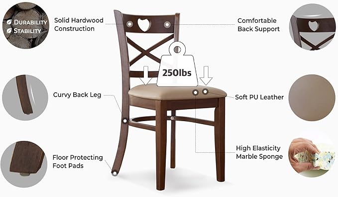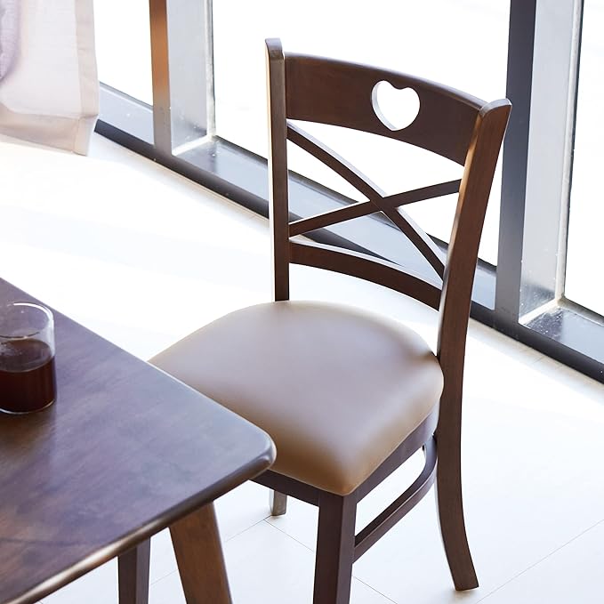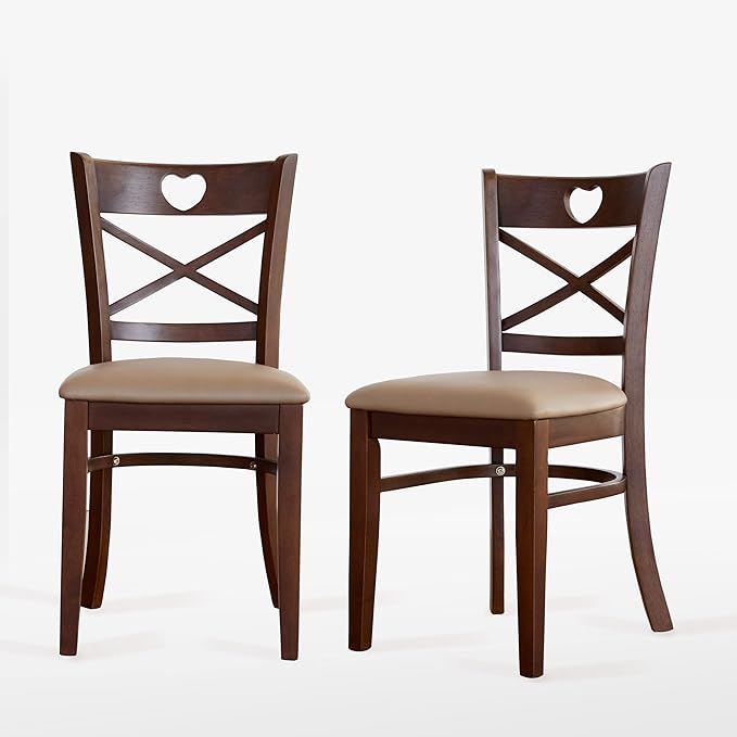 Livinia Heart X-Back Dining Chair Set of 2, Solid Malaysian Oak PU Leather Upholstered Cushion Seat Wooden Cross Back Side Chairs (Walnut)