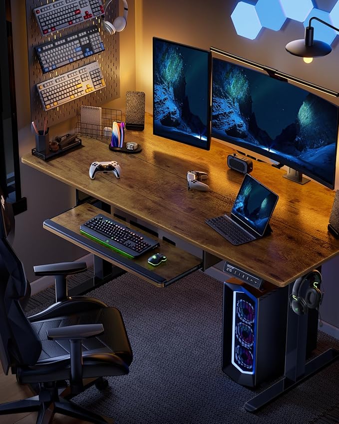 ErGear Electric Standing Desk with Keyboard Tray, 55x28 Inches Adjustable Height Sit Stand Up Desk, Home Office Desk Computer Workstation,Vintage Brown