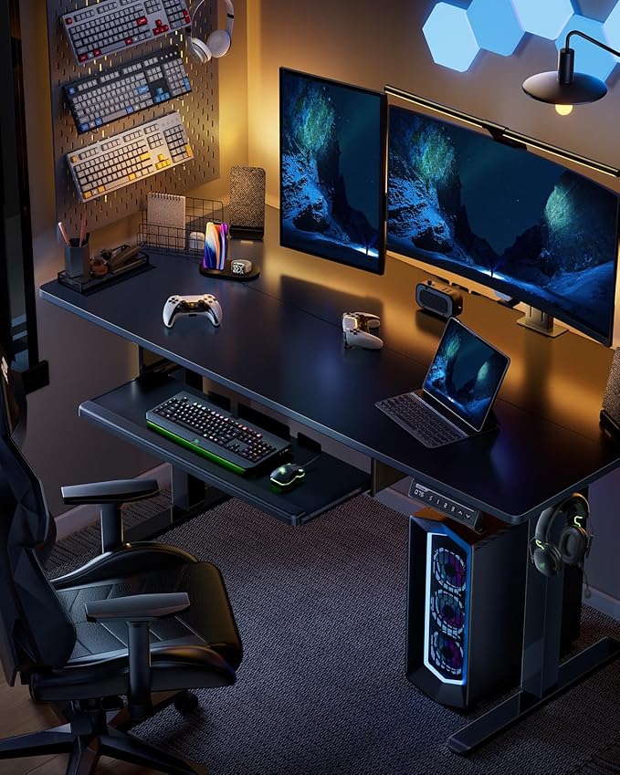 About This Outstanding Stability: This electric standing desk has a sturdy solid steel frame with aerospace-grade lifting column connectors (still...