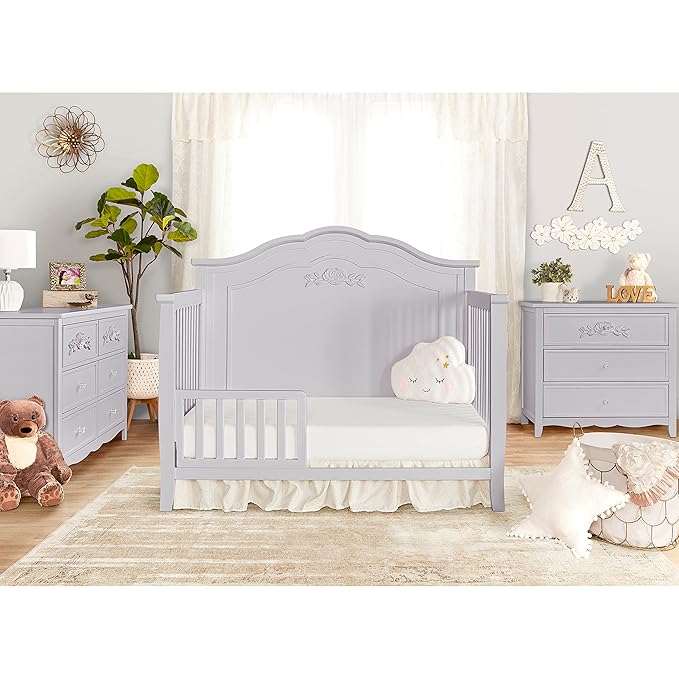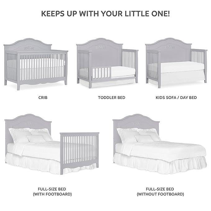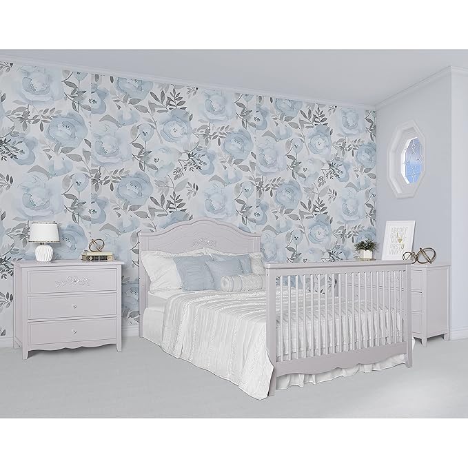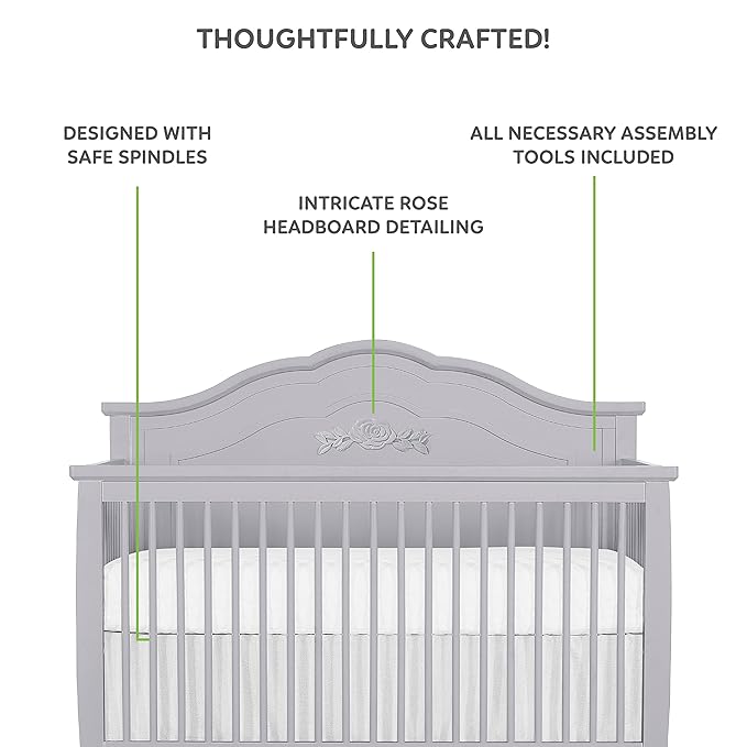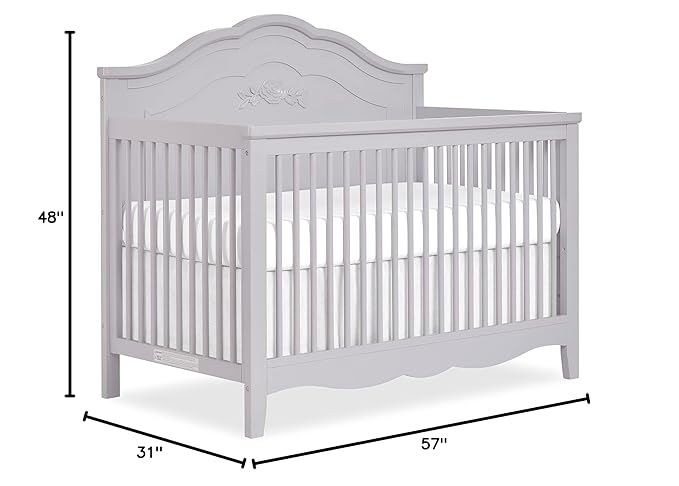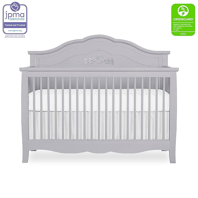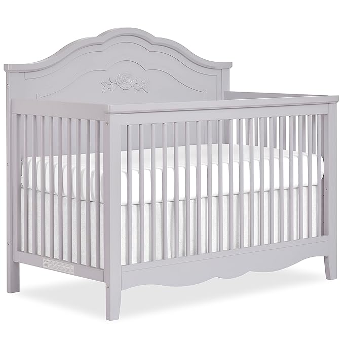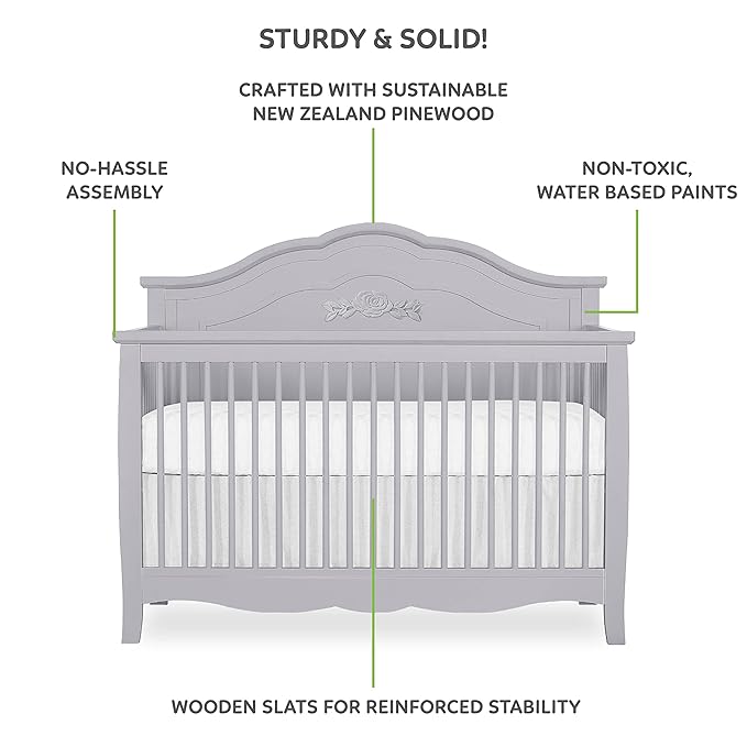 SweetPea Baby Rose 4-in-1 Convertible Crib in Silver Shimmer, Baby Crib with Spindles, Greenguard Gold Certified, Easy Assembly, Sustainable New Zealand Pinewood