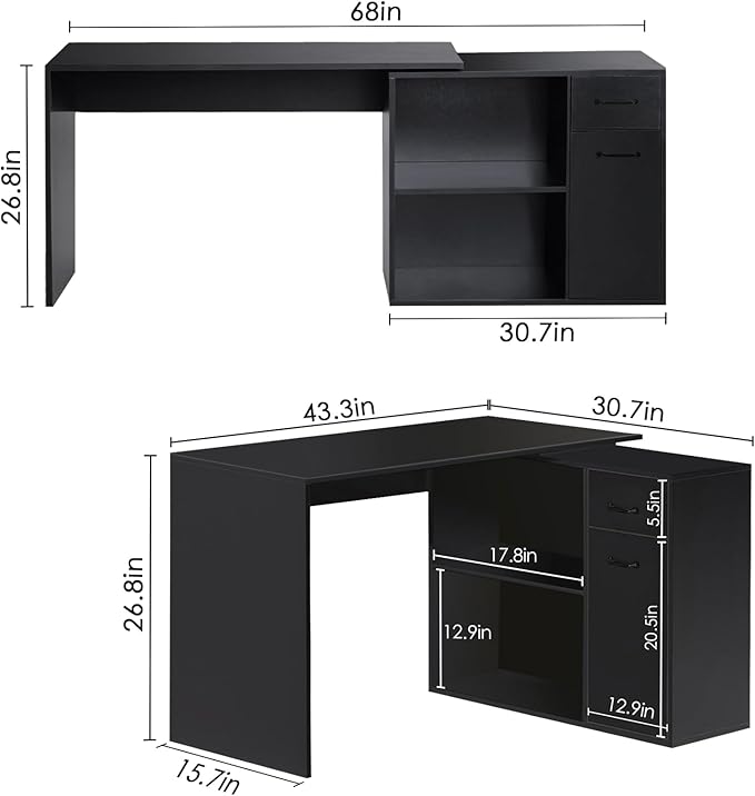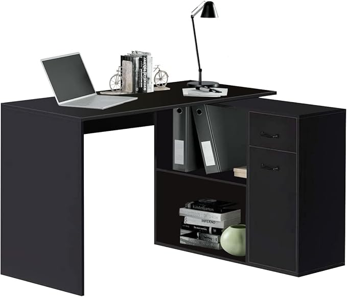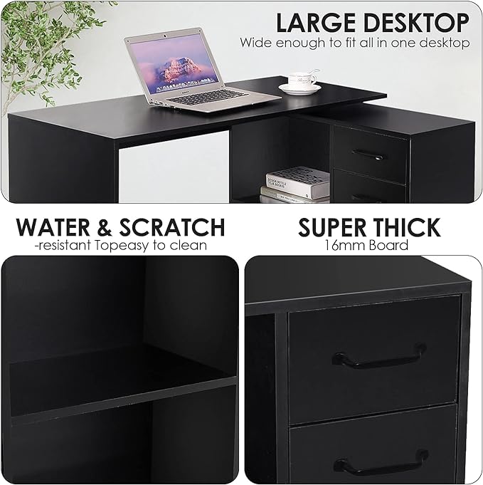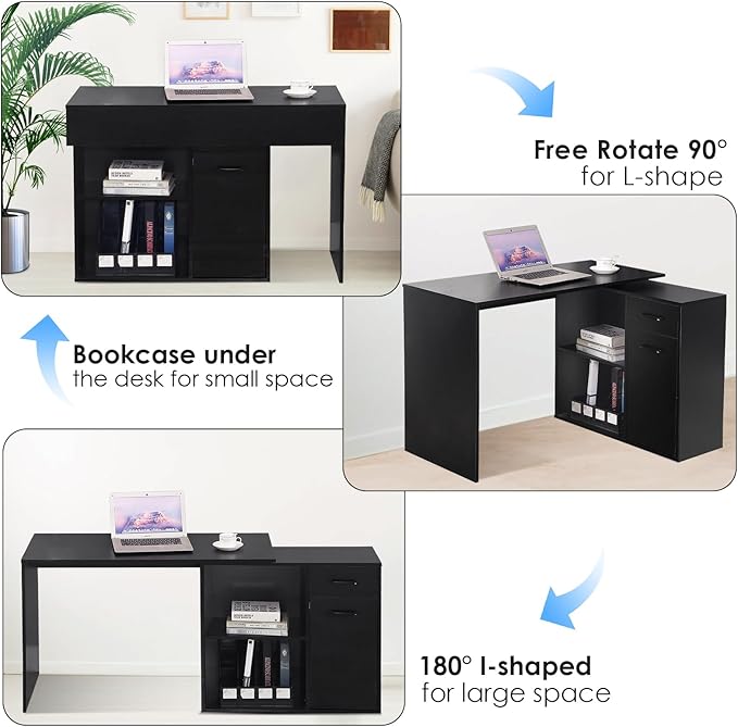 About This 180° Rotation Design: The computer desk with 180° rotation can be directly extended or placed in an L-shape...