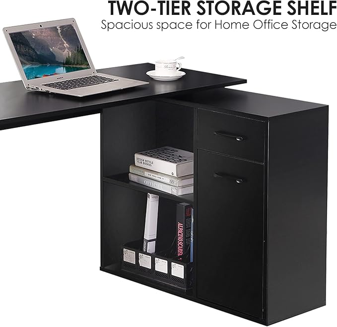 L-Shaped Rotating Computer Desk with Storage Shelves 68 inch Home Office Desk Corner with Drawers and File Cabinet Multipurpose Study Writing Table for Bedroom Small Space Black