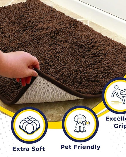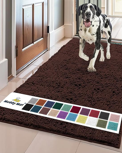 Muddy Mat® Shown on TV – Super Absorbent Microfiber Dog Door Mat for Muddy Paws, Non-Slip Washable Pet Rug, Quick Dry Chenille Entryway Carpet, Machine Washable Indoor Outdoor mat, Brown 59"x35"