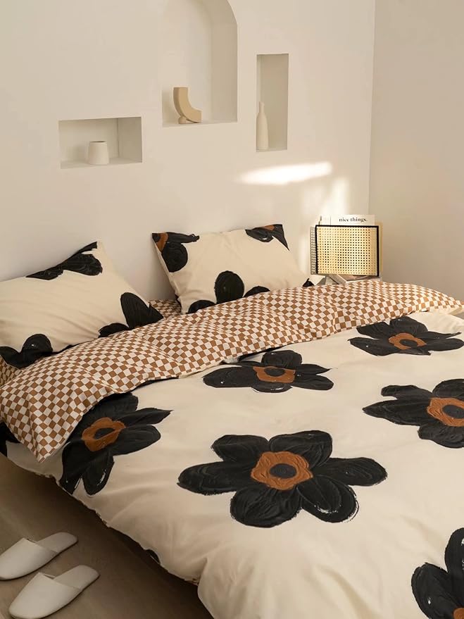 Black and White Comforter Set Black Floral Bedding Cal King Comforter Set Black Flowers Cotton Women Modern Elegant Chic Quilts Blankets Lightweight Black Flower Reversible Bed Comforter Set