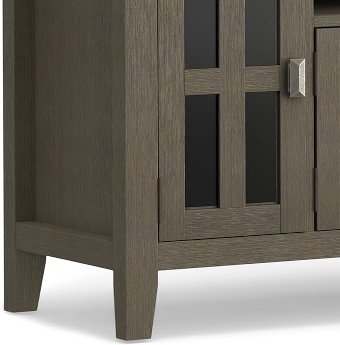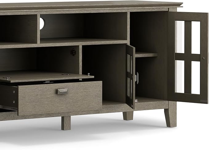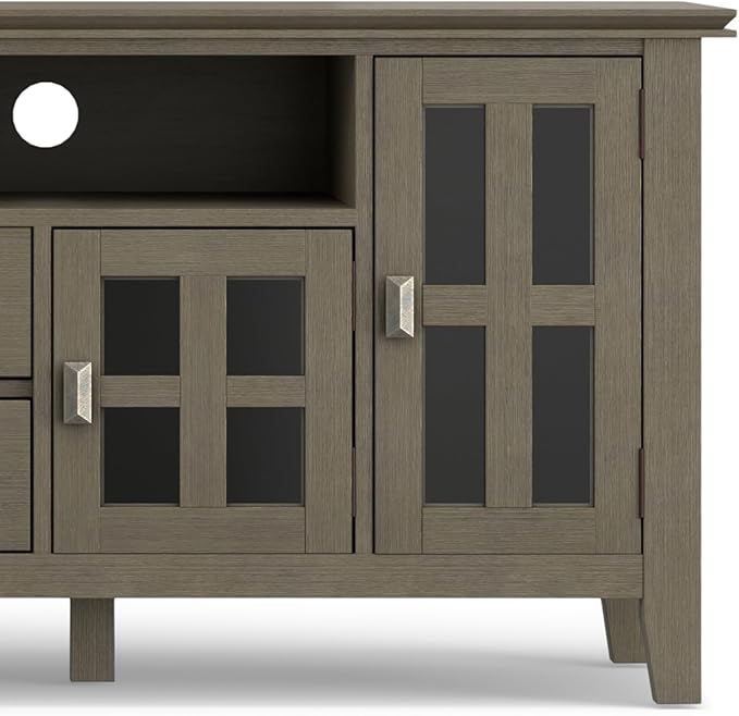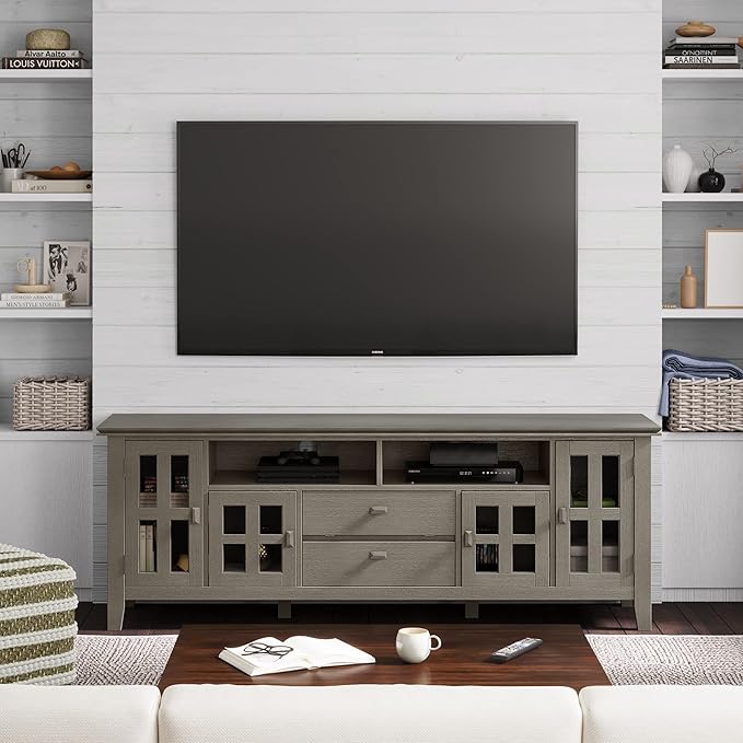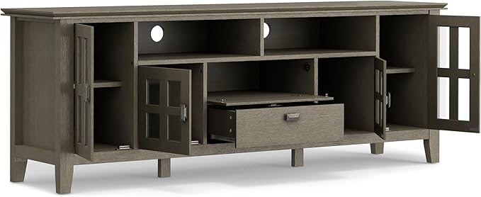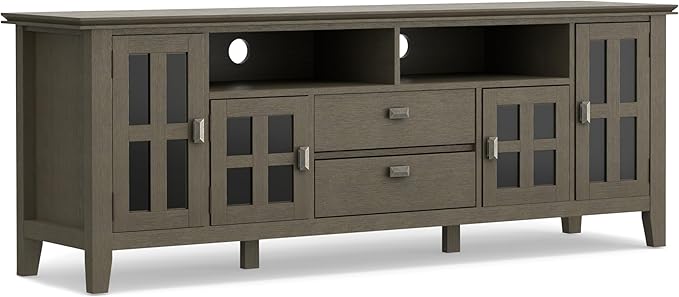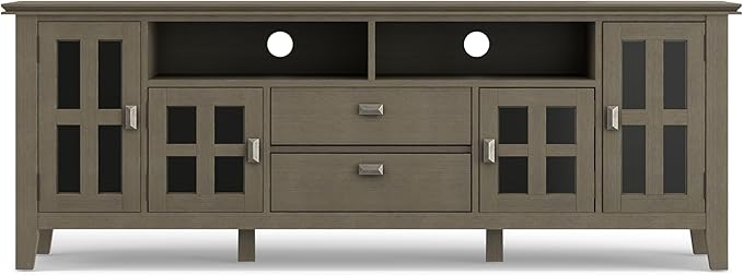 SIMPLIHOME Artisan Solid Wood 72 inch Wide Contemporary TV Media Stand in Farmhouse Grey for TVs up to 80 inches