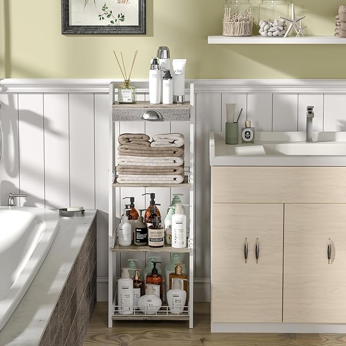 About This 【Powerful storage】 The ladder shelf has 4 spacious shelves, which provides a perfect storage option for your bathroom...