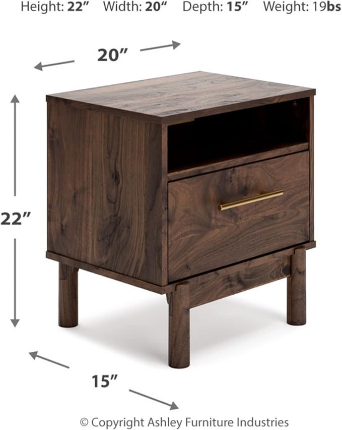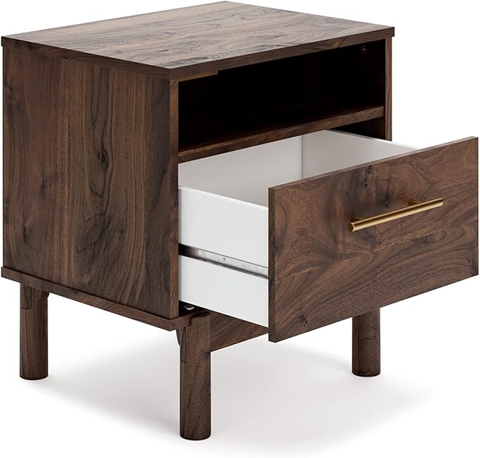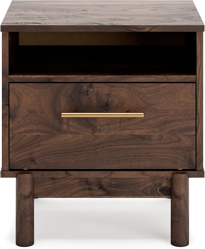 Signature Design by Ashley Calverson Modern 1 Drawer Nightstand with Open Cubby, Dark Brown