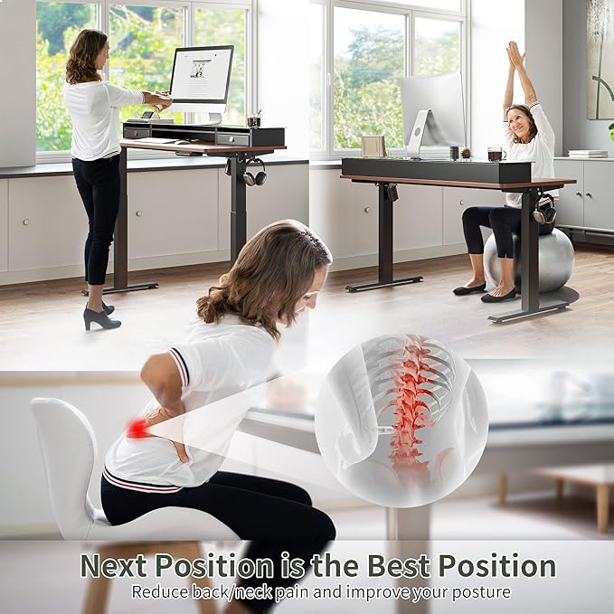 About This FEZIBO Height Adjustable Electric Standing Desk with Double Drawer, Table with Storage Shelf, Sit Stand Desk with Splice...