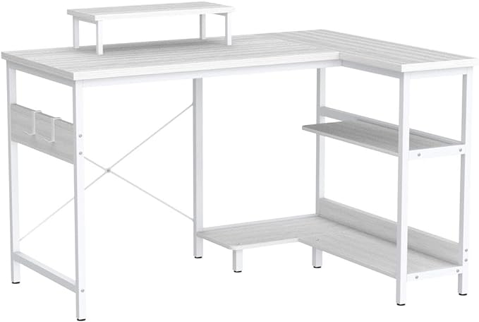 ODK 40 Inch Small L Shaped Computer Desk with Reversible Storage Shelves, L-shaped Corner Desk with Monitor Stand for Small Space, Modern Simple Writing Table for Home Office Workstation, White