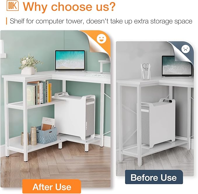 About This 【ODK Corner Desk for Small Space】: The 40 inch white desk fits perfectly in small space or apartment,...