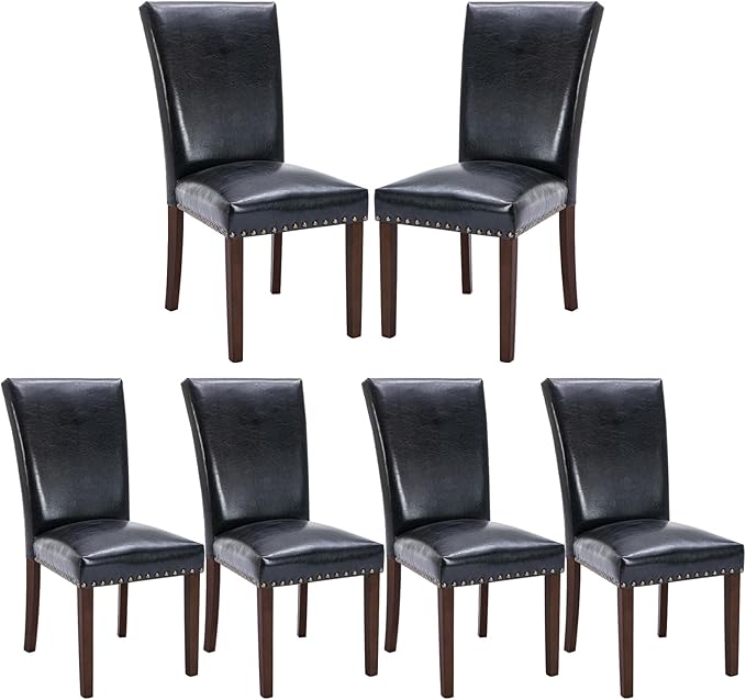 COLAMY Upholstered Parsons Dining Chairs Set of 6, PU Leather Dining Room Kitchen Side Chair with Nailhead Trim and Wood Legs - Black
