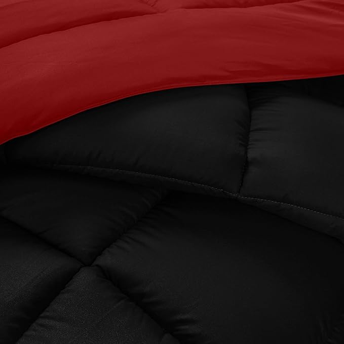 Utopia Bedding Queen Size Comforter Set with 2 Pillow Shams, Bedding Comforter Sets, Down Alternative Reversible Black/Red Comforter, Soft and Comfortable, Machine Washable