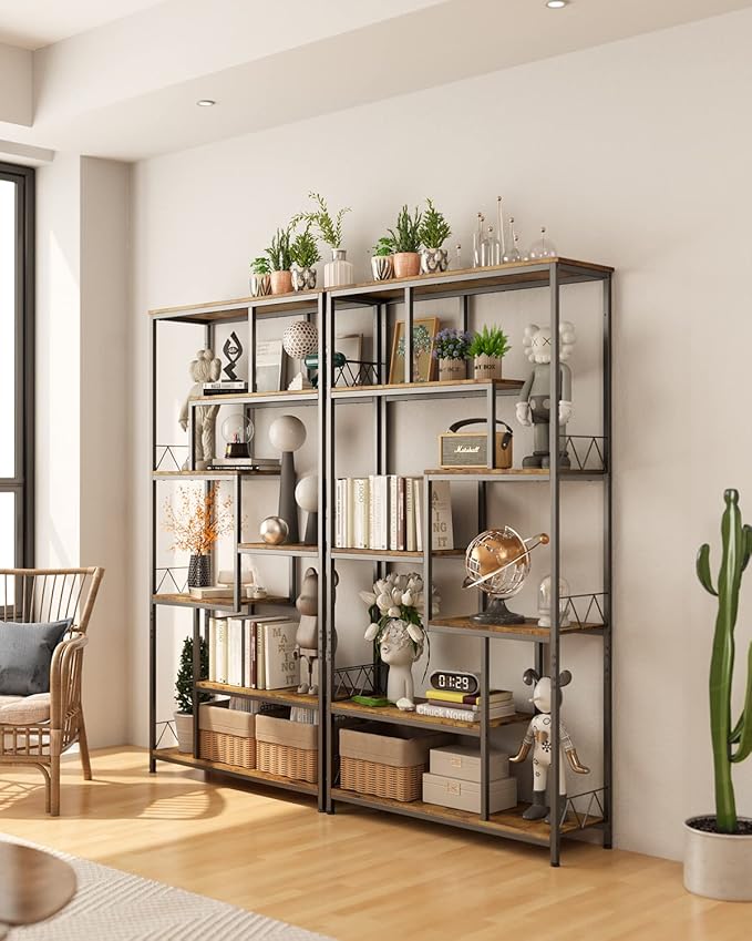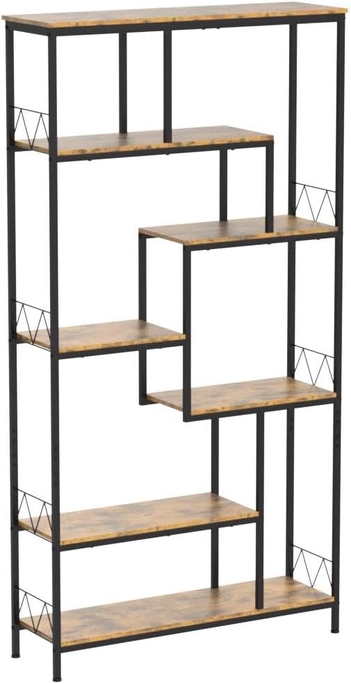 Gizoon 71” Industrial Bookshelves for Storage, Tall Display Etagere 8-Shelves for Bedroom, Metal Frame Staggered Bookcases for Bedroom, Living Room, Home Office, Retro