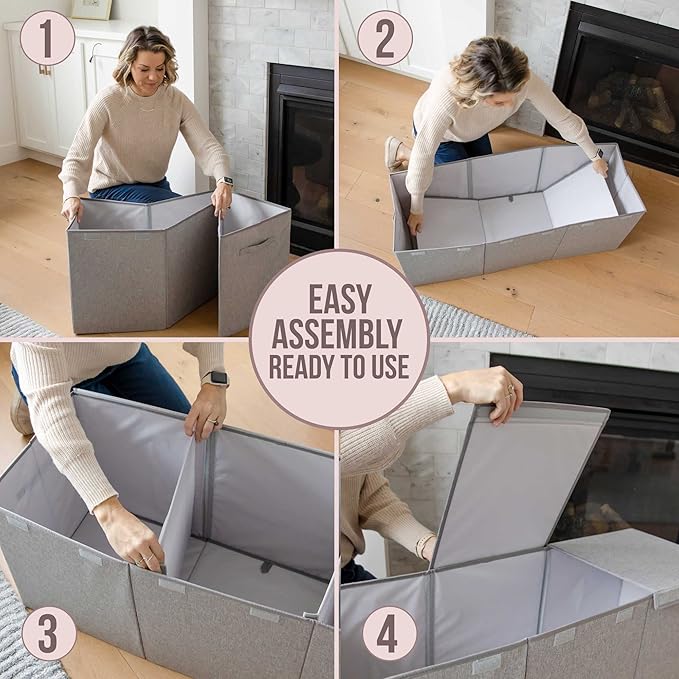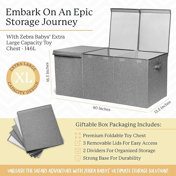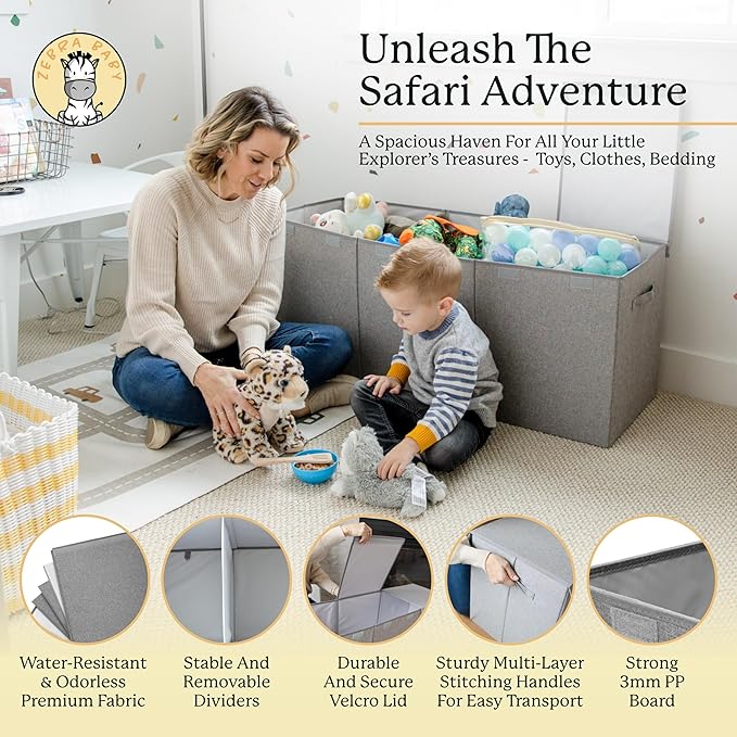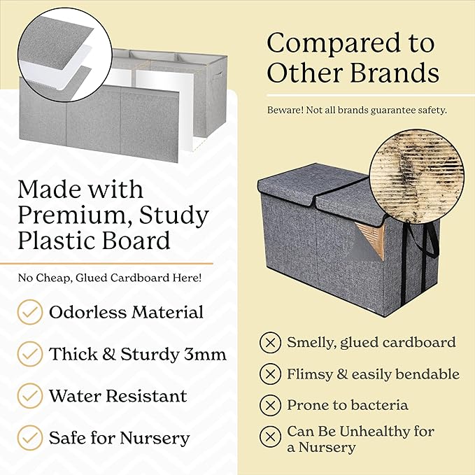 Kids Toy Chest for Boys & Girls - Stylish Versatile Stuffed Animal Holder & Toddlers Toy Organizer Makes Play Room Organization Easy - Made with Strong PP Board - Gray bin with Cationic Fabric